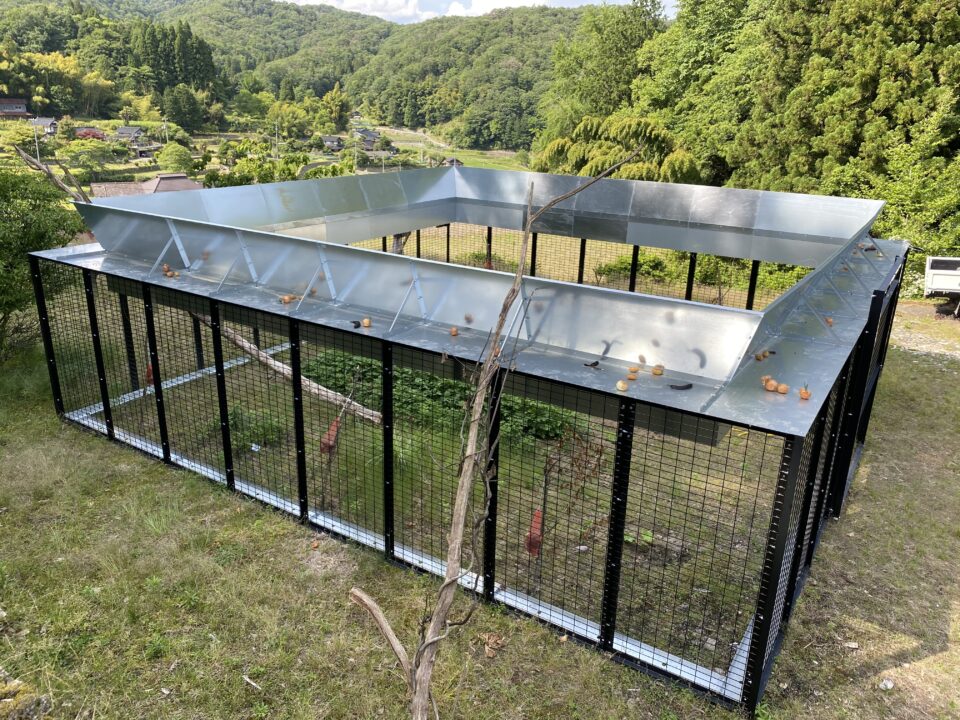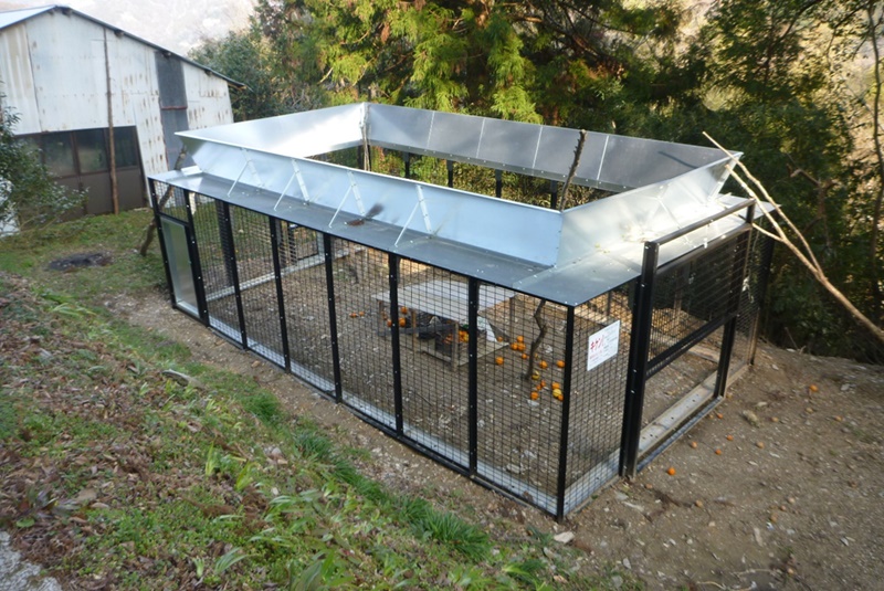 地獄檻は囲いわなの一種で、天井部は大きく開いており、この天井開口部からサルは侵入できます。