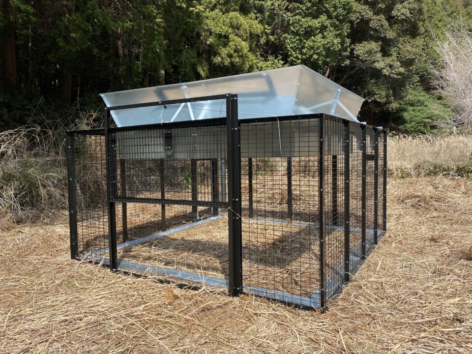 この大きな地獄檻を見ると、組み立てや移設には専門の作業員が必要と思われがちですが、まったく専門的な知識は必要ありません。説明書通り、順番に部品を並べて、ボルトナットで固定するだけで組み立てられます。逆の順番で外せば解体でき、別の場所に移動して組み立てることも可能です。これまで納入した地域では、地元集落の方だけで移設した例は多数あります。最初の組み立てには弊社スタッフが設置講習を行うこともできますのでご安心ください!