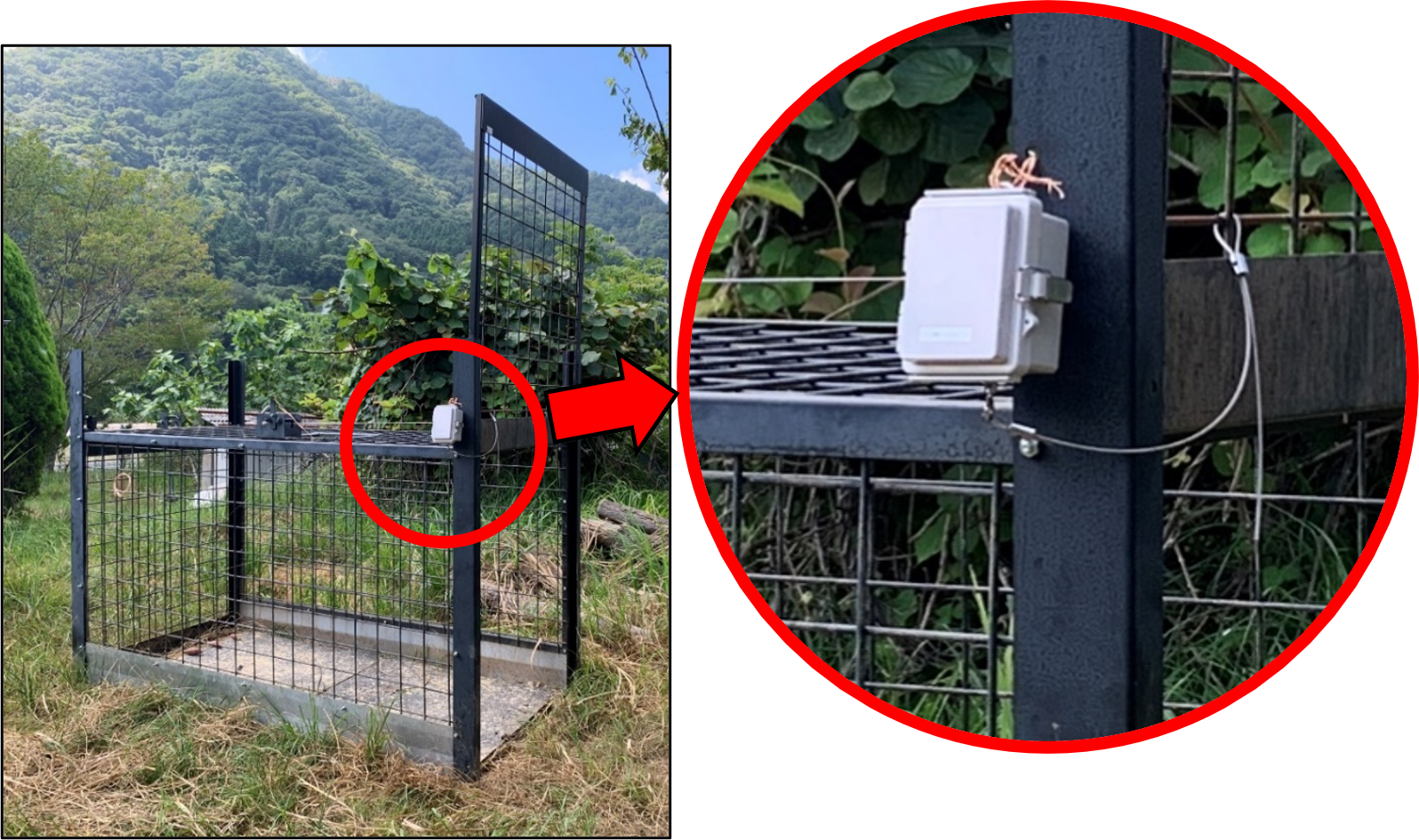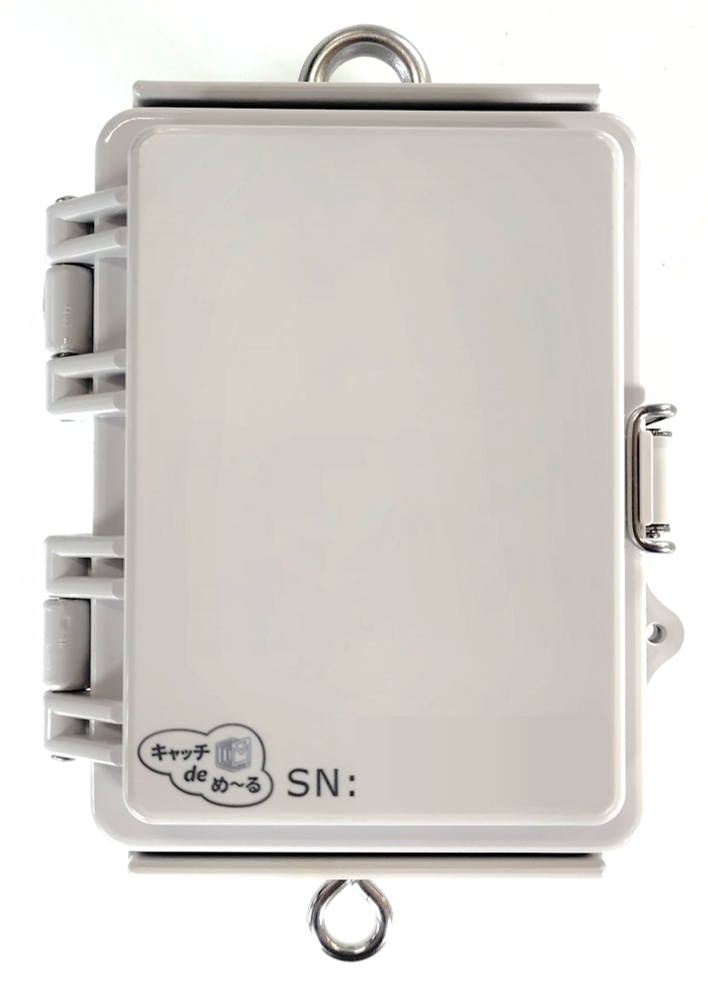 ⑤IoT わなの作動を通知:キャッチdeめーる わなの作動に合わせて「キャッチdeめーる」本体下部の磁石が外れ、登録したメールアドレスに作動通知が届きます。 ・本体購入で3年間通信費無料! ・複数の宛先に同時通知可能!